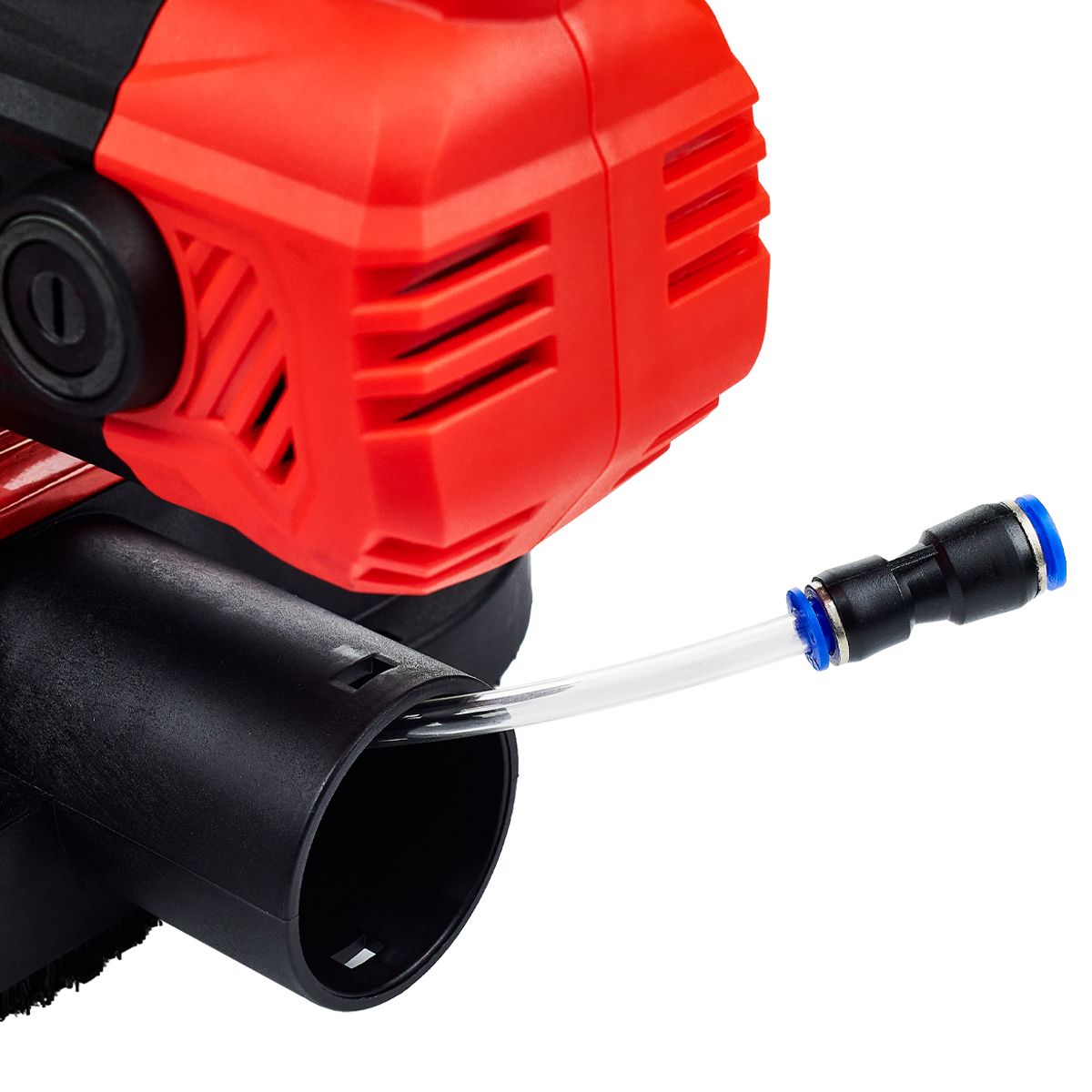 ✔ Minimizzazione della polvere - La copertura, dotata di spazzole montate a molla, si adatta alla superficie levigata. Questa soluzione riduce sensibilmente la dispersione delle polveri, facilitando il mantenimento della pulizia e dell'ordine negli ambienti di lavoro. La possibilità di connettersi a un aspirapolvere riduce significativamente la polvere.
