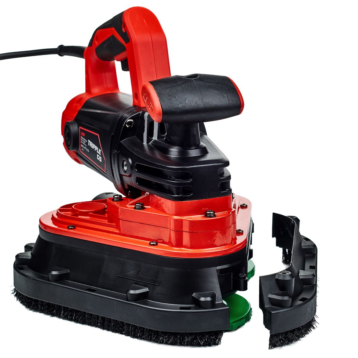 ✔ Maggiore durata grazie al meccanismo unico - L'uso di tre alberi rotanti montati su cuscinetti, collegati da una trasmissione a cinghia, impedisce il carico diretto sulla trasmissione dovuto alla pressione verticale, tipico delle comuni smerigliatrici angolari. Questa costruzione unica aumenta significativamente la durata della levigatrice SENDI, garantendone l'affidabilità a lungo termine.
