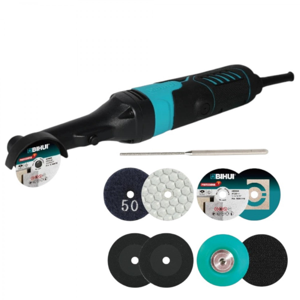 La mini smerigliatrice angolare BIHUI Corner è uno strumento compatto e potente, ideale per piastrellisti e marmisti professionisti. È specificamente progettata per lavori di precisione e lavorazione di materiali in aree difficili da raggiungere, dove non è possibile utilizzare una smerigliatrice angolare standard.