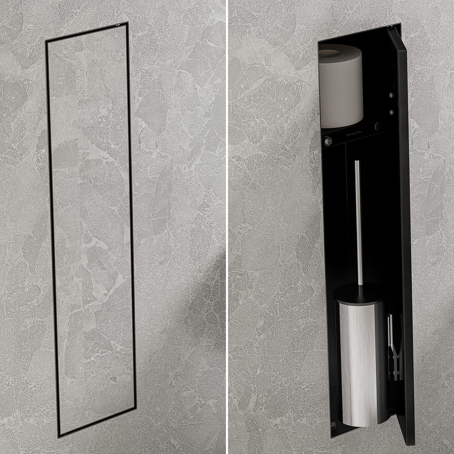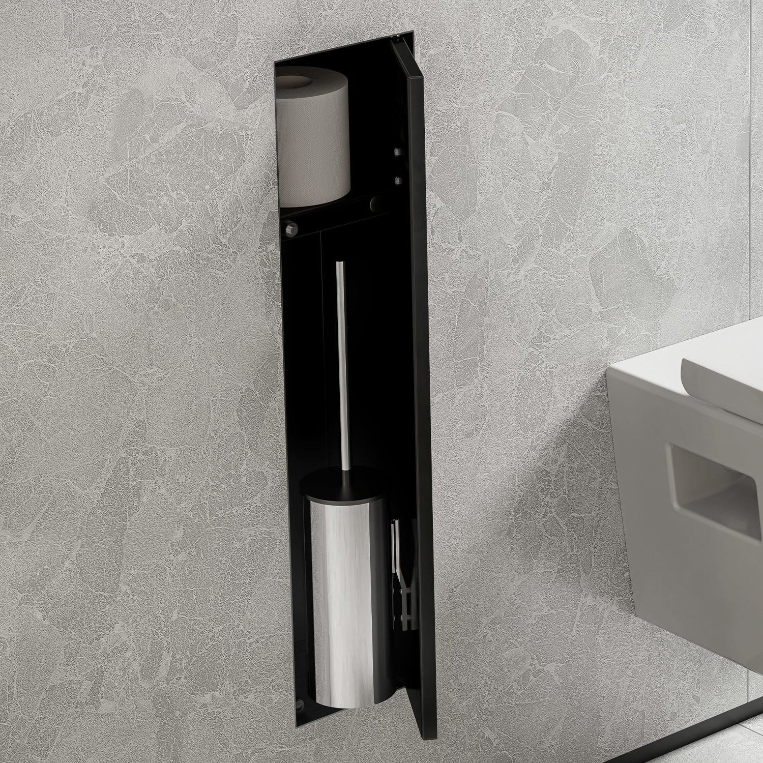 Il nostro mobiletto porta carta igienica da incasso non è solo un'aggiunta pratica, ma anche un elemento che metterà in risalto il carattere moderno del tuo bagno. È perfetto sia per le case che per gli hotel e gli uffici di lusso.