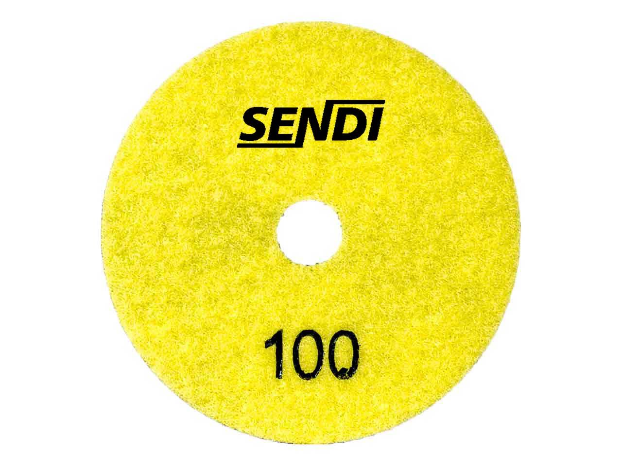 Il disco diamantato flessibile SENDI con diametro di 100 mm è uno strumento progettato per la levigatura e la lucidatura a secco di diverse superfici, tra cui granito, marmo, piastrelle in ceramica, gres porcellanato e cemento.