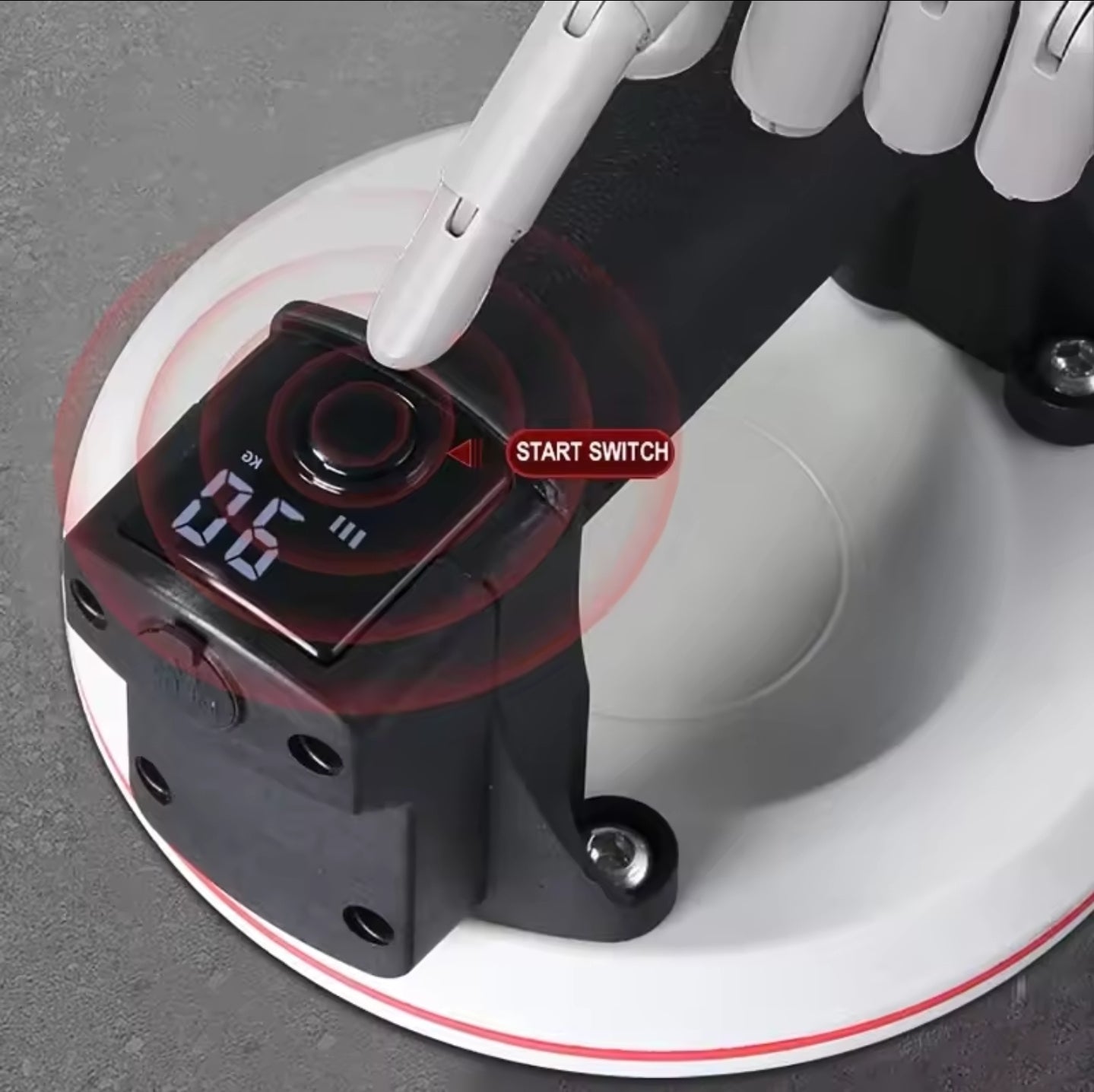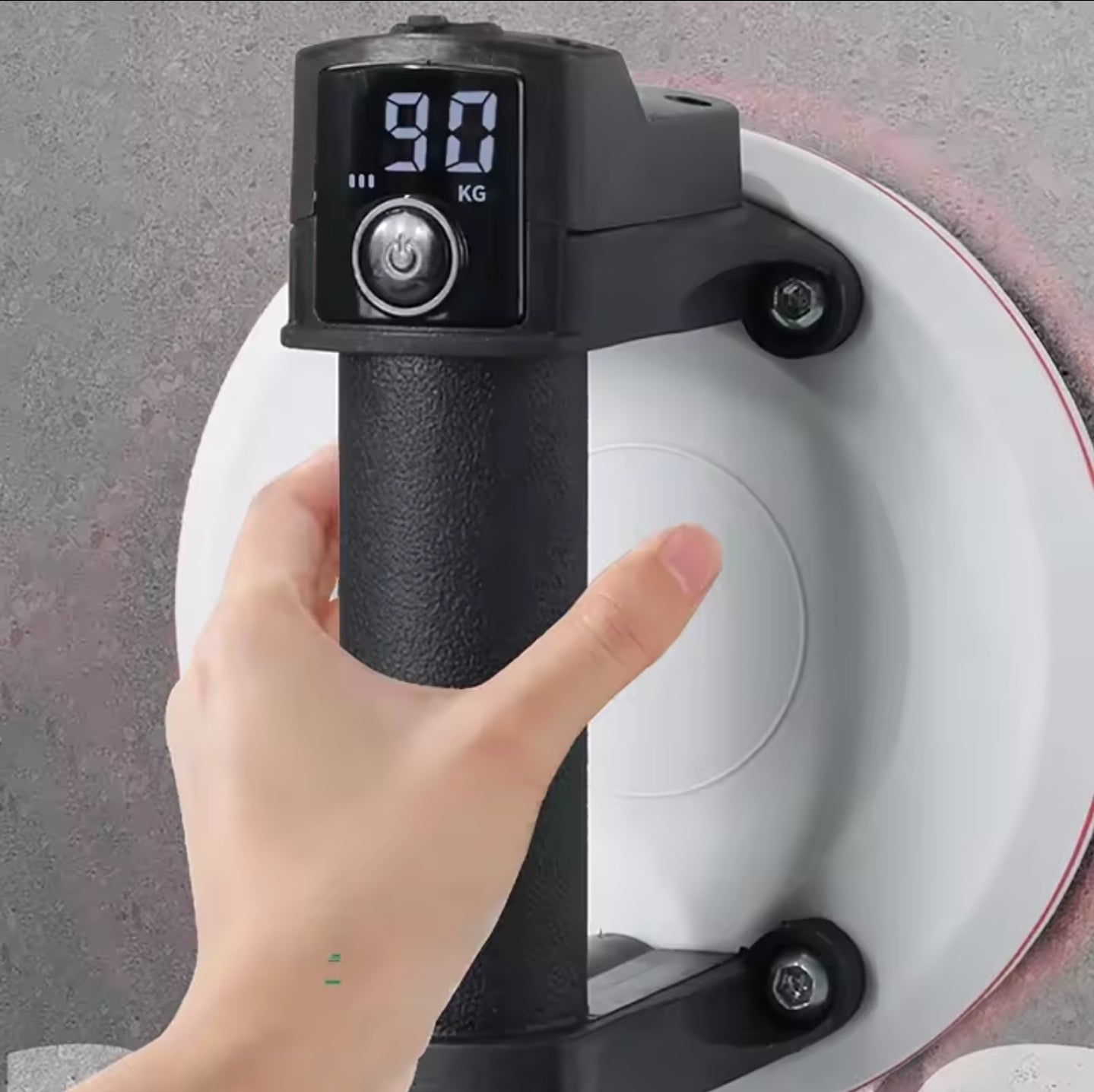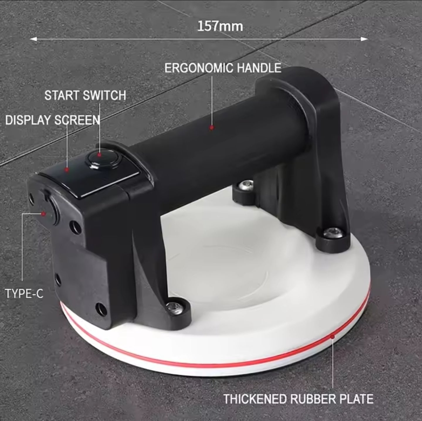 La ventosa elettrica diametro 150mm per piastrelle lisce e strutturate con pompaggio AUTO è progettata per la movimentazione di piastrelle anche di grande formato. Adatto a piastrelle lisce, ruvide e testurizzate. Resiste anche sulle superfici più impegnativi! Ha un peso ridotto e allo stesso tempo una struttura molto resistente. La ventosa è realizzata in gomma morbida bianca, il che impedisce la possibile comparsa di macchie nere sulla superficie utilizzata. Una caratteristica importante di questa ventosa è la speciale composizione della gomma (gli anelli adesivi lungo il perimetro si piegano facilmente attorno al rilievo), che consente di lavorare con rilievi ultra aggressivi.. La ventosa è dotata di una pompa elettrica integrata, sensore di pressione, display per il monitoraggio visivo del livello di carica della batteria e peso di supporto. Il sensore di pressione analizza la forza del vuoto e accende automaticamente la pompa quando è necessario ripristinare i parametri di vuoto richiesti (pompaggio automatico).