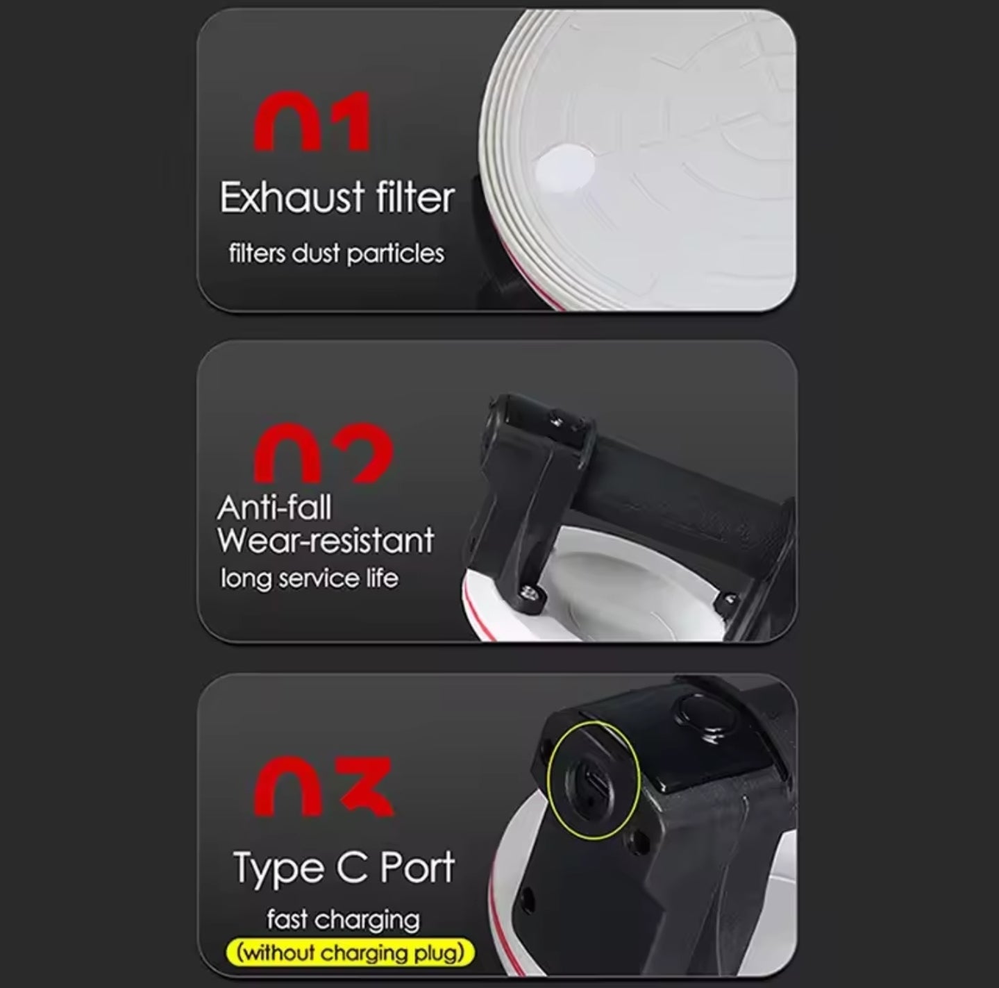 Pompa per vuoto potente e affidabile con una potenza di 3 W, la cui forza di aspirazione è sufficiente a sostenere carichi fino a 120 kg di forza in orizzontale e fino a 90 kg in verticale. La ricarica avviene tramite il cavo USB Type-C in dotazione nel kit; il tempo di ricarica completa è di circa 2 ore.